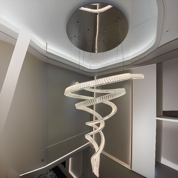 Strip Shape Chandelier with Remote Control Stepless Dimming, 2 Lights, Transparent Shade, Adjustable Height, Chrome, 110V-120V