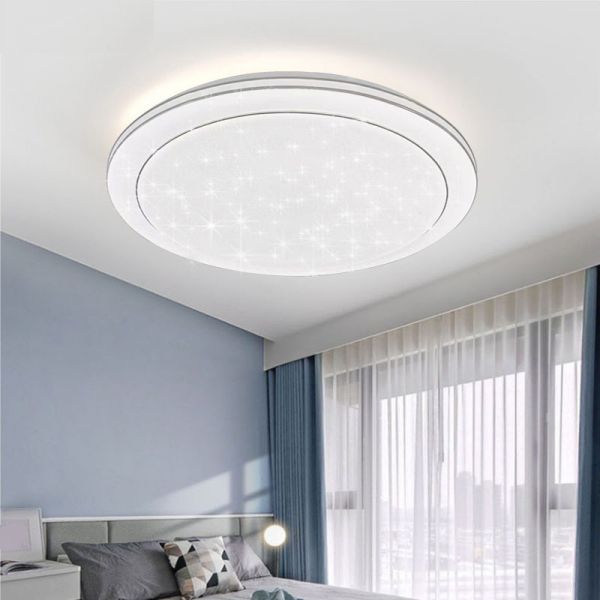 Regular Ceiling Lamp with Chalk Acrylic Cover, Adapted for Led Light, Wireless Stepless Dimming, Residential Use, Chrome, 110V-120V, Round