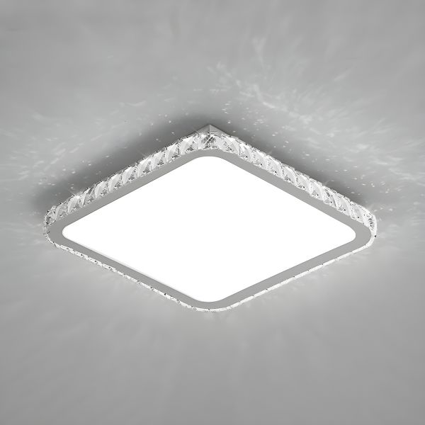 Modern Square Close to Ceiling Lighting Crystal LED Aisle Ceiling Mounted Light in Chrome - Chrome 110V-120V White Light