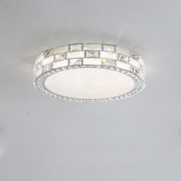 Stainless Alloy Metallic Flush Mount Light with Rock Crystal Shade, 110V-120V, 36.5"