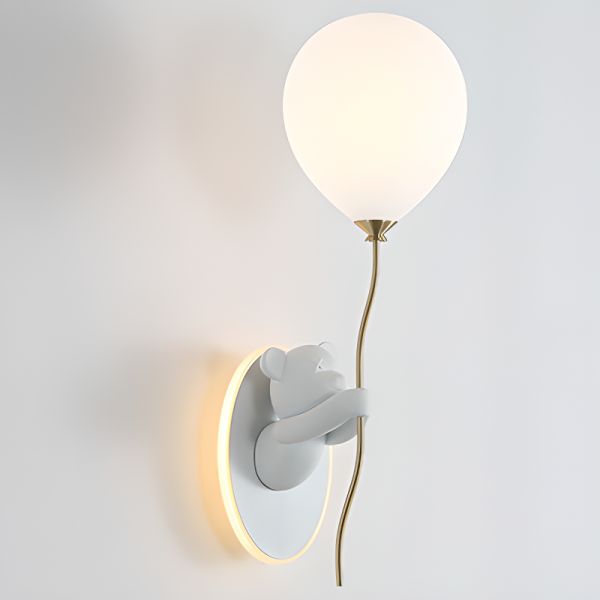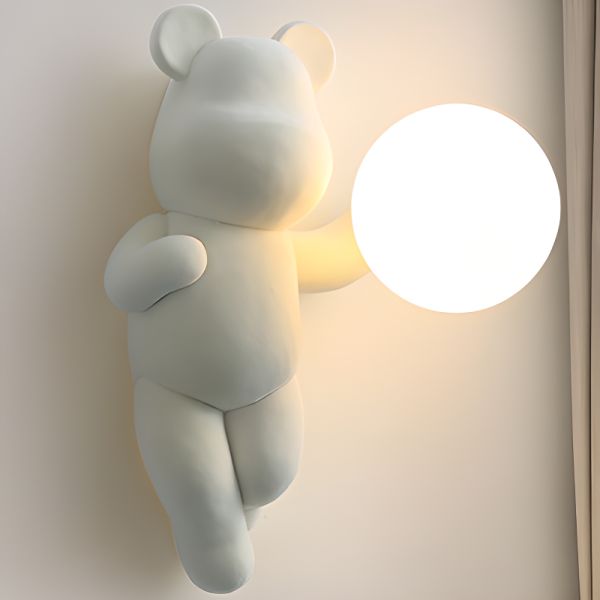 Kids Resin Wall Light with Bi-pin Opalescent Glass Shade, Ambient Vitreous Wall Lamp, 110V-120V, Bear, off-white
