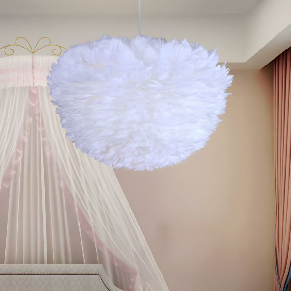 Ethereal Nordic Feather Pendant Light, Plush Cloud Hanging Fixture for Ambient Bedroom Glow - 110V-120V White 12"