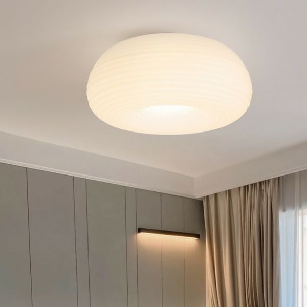 Bauhaus Ribbed Glass Flush Mount Light, White Donut Ceiling Fixture for Bedroom or Hallway - 110V-120V 8" Third Gear (Warm/White/Neutral Light of Dimming)