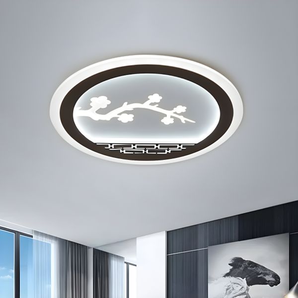 Contemporary Zen LED Flush Mount Ceiling Light, Nature-Inspired Round Art Fixture for Low Ceilings - White 110V-120V White Light Flower