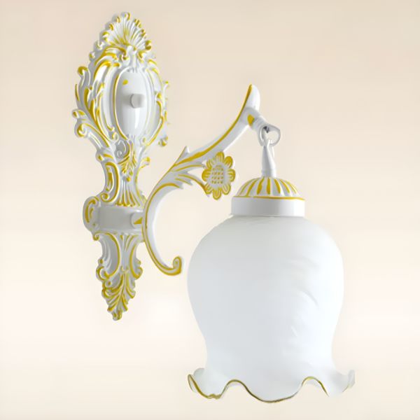Floral Frosted Glass Wall Light Sconce Vintage Bedside Wall Sconce with Arched Arm - White 110V-120V