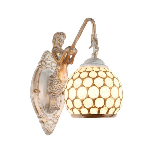 Vintage Nautical Mermaid Wall Sconce with Hand-Painted Honeycomb Glass Shade - White 110V-120V