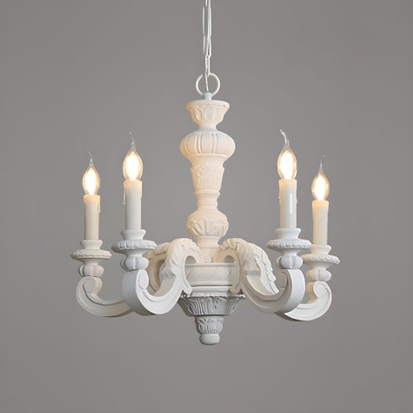 French Country Distressed Wood Candle Chandelier Light Fixture - 110V-120V White 5
