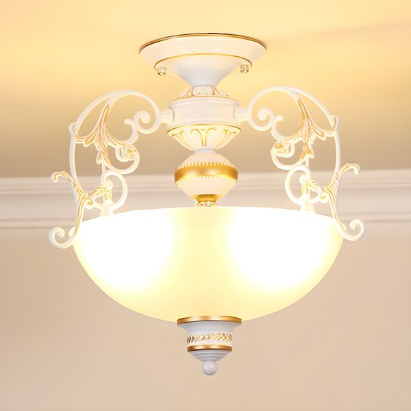 Vintage Traditional Flush Mount Ceiling Light, Ornate Carved Resin Frame with Frosted Glass Bowl - 110V-120V White Small