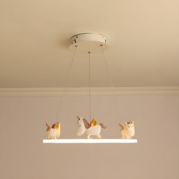 Whimsical Nordic Unicorn LED Chandelier, Eye-Caring Ring Pendant Light for Kids Bedroom or Nursery - White 110V-120V Small