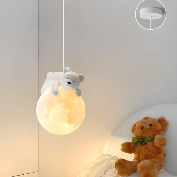 Bi-pin Ceiling Lamp with Resin Shade, Globe Fixture, White String Mounting for Residential Use, Ultra Modern Style, 110V-120V, Bear