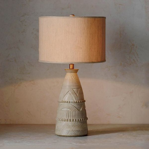 Stone Background Bedside Desk Lamp with Textured Fabric/Glass Shade for Residential Use - White 110V-120V Cylinder