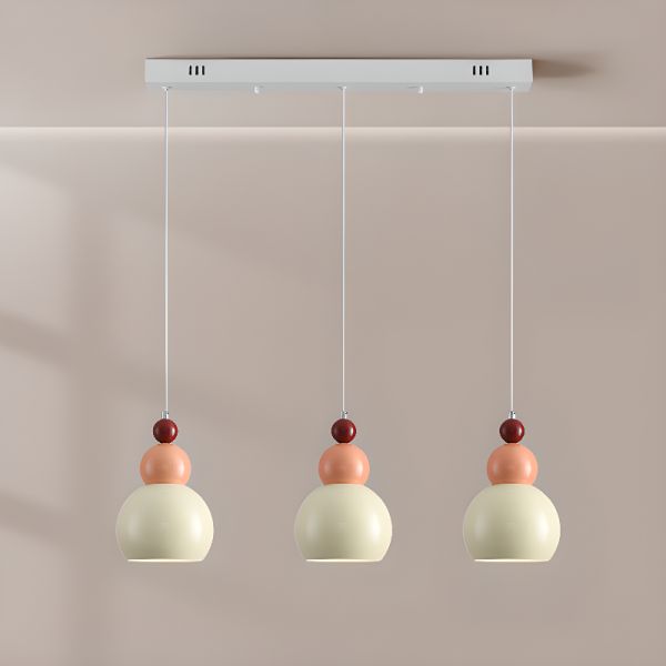 3 Lights Art Deco Iron Cord Pendant Lighting For Kitchen Island with White Shade, Beige, Bud, 110V-120V