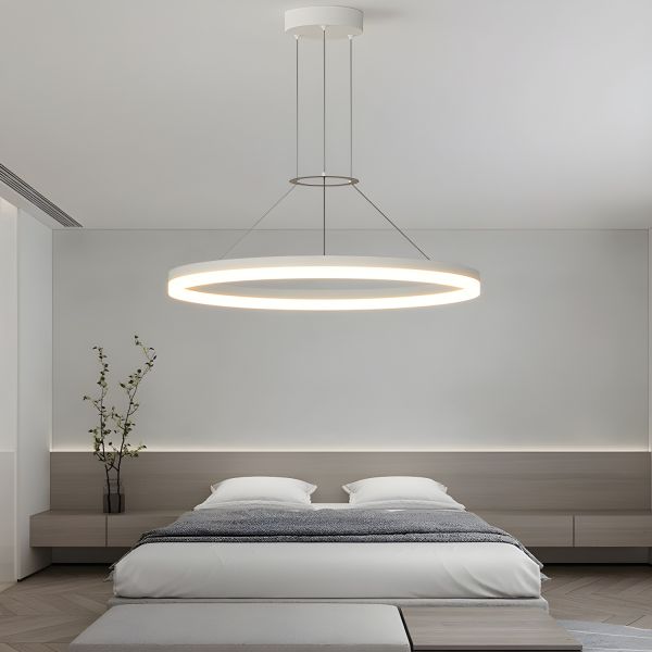 Minimalist LED Ring Pendant Light Adjustable Geometric Chandelier Fixture - 16" White Natural Light 110V-120V