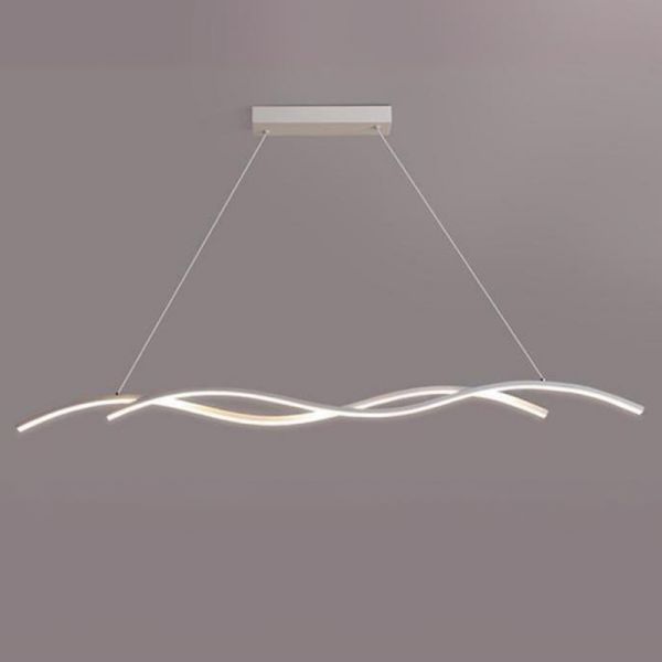 Contemporary Linear LED Island Pendant Light, Minimalist Wave Bar Chandelier for Dining Room Kitchen - 110V-120V White 39.5" Natural Light
