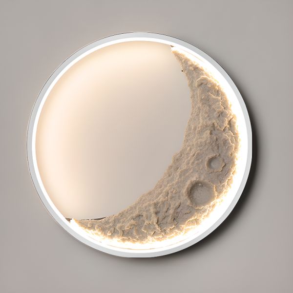 Contemporary Lunar Wall Sconce, 3D Textured LED Moon Lamp for Ambient Decor - White 110V-120V 16" Third Gear (Warm/White/Neutral Light of Dimming)