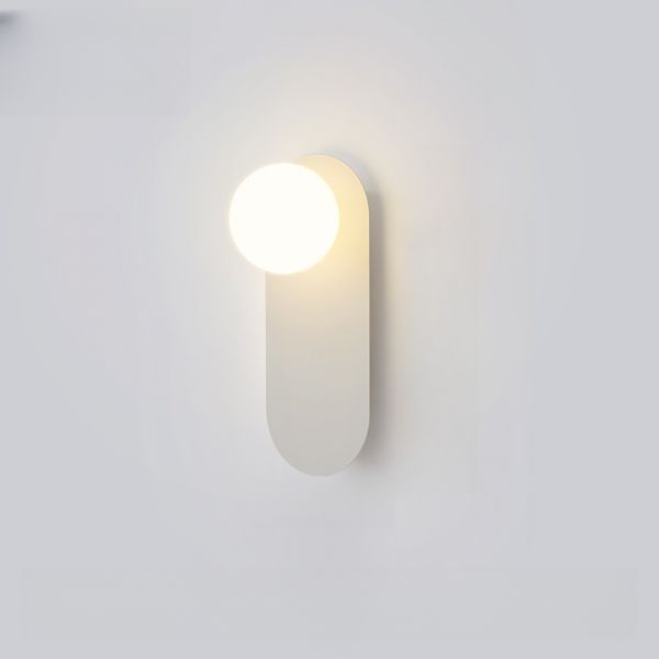 Japandi Oval Wall Sconce with Opal Glass Globe, Minimalist Metal Fixture with Walnut Wood Grain Finish - White 110V-120V