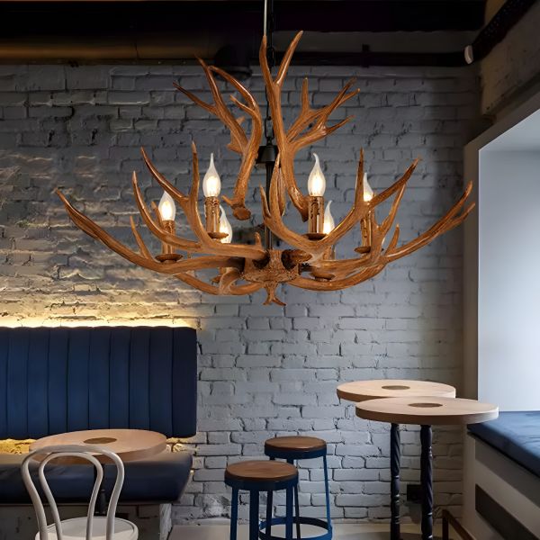 Rustic Farmhouse Faux Antler Chandelier, Hand-Painted Resin Deer Horn Pendant Light for Cabin or Dining Room - 110V-120V Brown 6