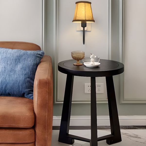 Transitional Fabric Shade Wall Sconce, Minimalist Bedside Reading Lamp for Bedroom & Hallway - 110V-120V Trapezoid Coffee No Switch