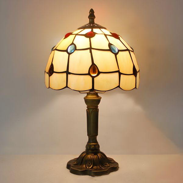 Tiffany Bowl Shade Table Lamp Multicolored Stained Glass Night Light for Living Room - 110V-120V Plug In Electric Beige