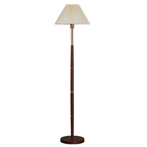 Mid-Century Wood Floor Lamp with Pleated Shade, Retro Standing Light for Living Room & Bedroom - Pull Chain 110V-120V