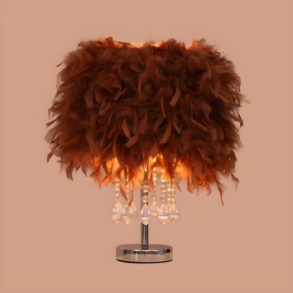 Glam Feather Table Lamp with Crystal Accents for Soft Bedroom Ambiance - 110V-120V Coffee