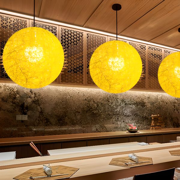 Bohemian Woven Sphere Pendant Light, Hemp Rope Globe Hanging Fixture for Ambient Glow - Beige 110V-120V