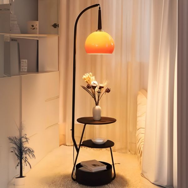 Mid-Century Floor Lamp with Wireless Charging Table & Storage Shelves - Beige 110V-120V