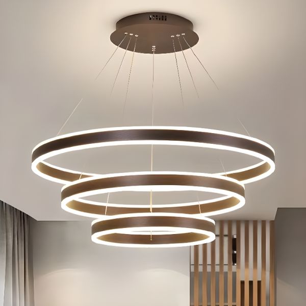Contemporary Geometric LED Ring Chandelier, Adjustable Aluminum Pendant Light for High Ceilings - Brown 110V-120V White Light 12"+16"+23.5"
