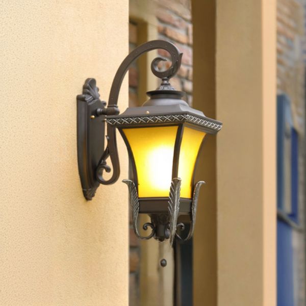 Classic Outdoor Wall Sconce Lantern - Die Cast Aluminum Exterior Fixture with Water Glass Shade - 110V-120V 16.5" With Shade Coffee