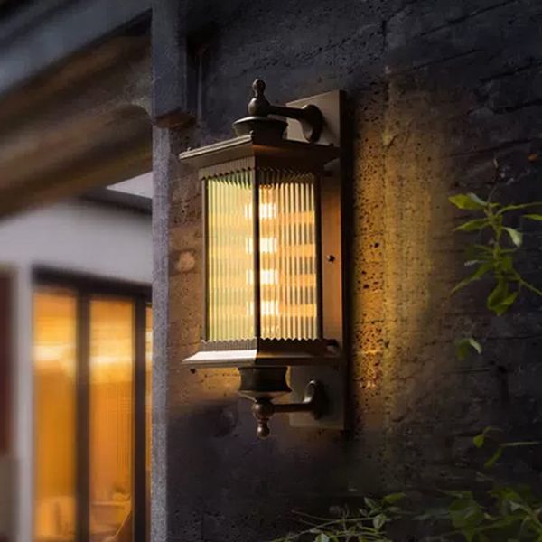 Classic Outdoor Wall Sconce Light Fixture, Die-Cast Aluminum Porch Lantern with Ribbed Glass - 110V-120V Small Geometric