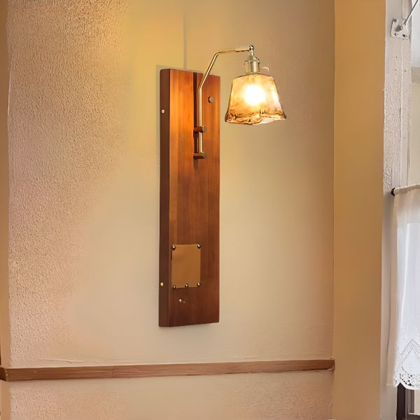 Rustic Farmhouse Wall Sconce with Integrated Floral Vase and Amber Glass - 110V-120V 8" Trapezoid