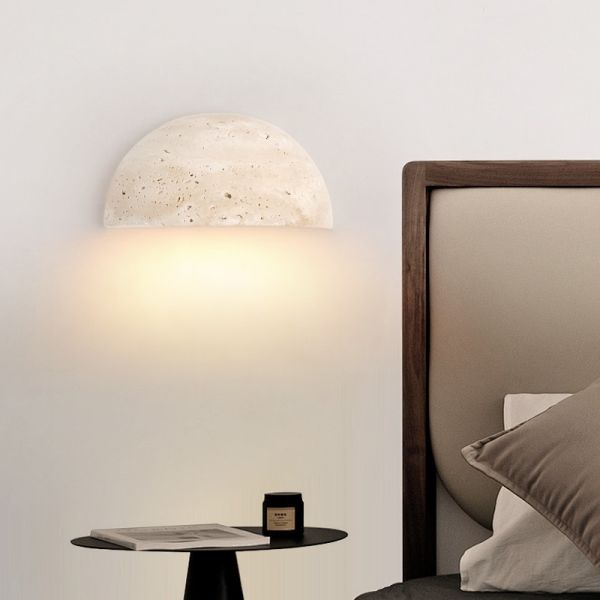 Japandi Travertine Wall Sconce Natural Stone Shade for Warm Ambient Lighting - 110V-120V 5"