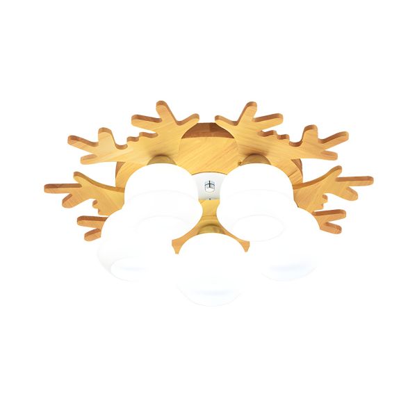 Scandinavian Wood Flush Mount Ceiling Light, Antler Design with Frosted Glass Shades - Beige 110V-120V 5