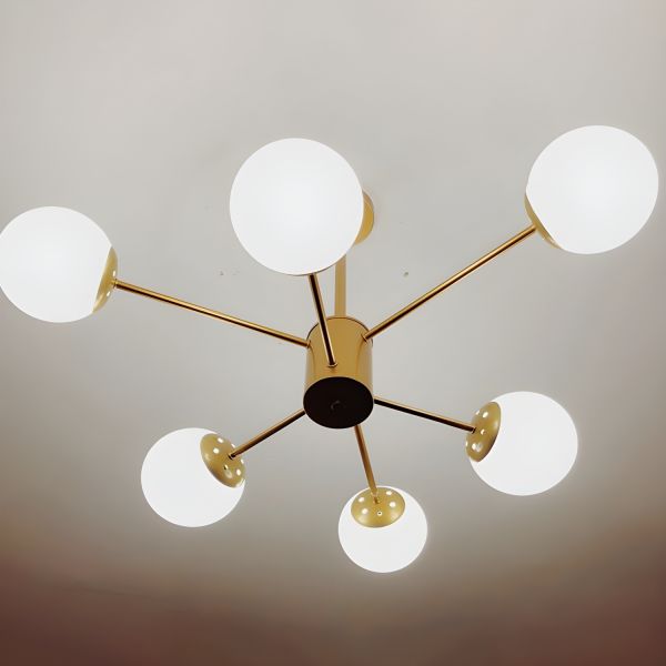 Mid-Century Sputnik Chandelier with Frosted Glass Globes and Radial Metal Arms - 110V-120V Gold 6