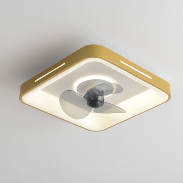 Contemporary Flush Mount Ceiling Fan with Light, Low Profile Dimmable LED Fandelier for Bedroom - 110V-120V Gold Square