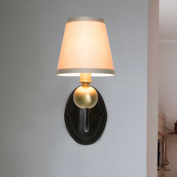 Beige Conic Wall Sconce Country Style Fabric 1-Head Bedroom Wall Mounted Lamp with Swirl Arm