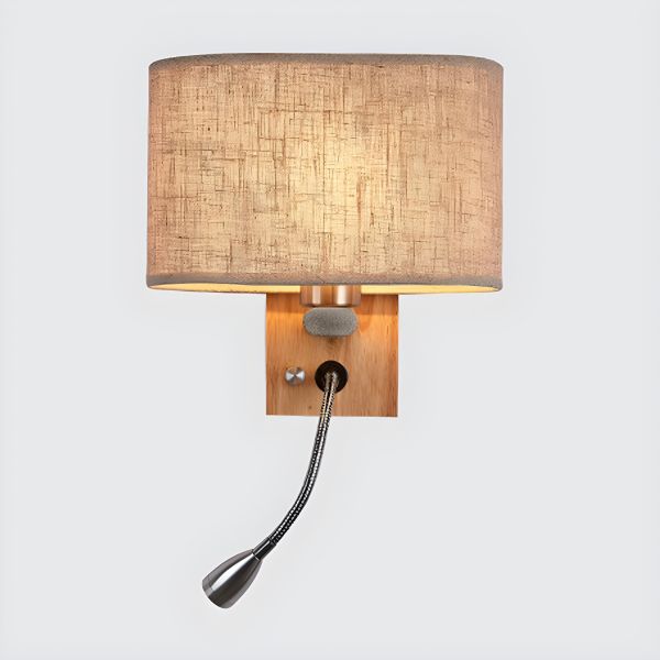 Scandinavian Wood Wall Sconce with Flexible Reading Light and Fabric Shade - Beige 110V-120V