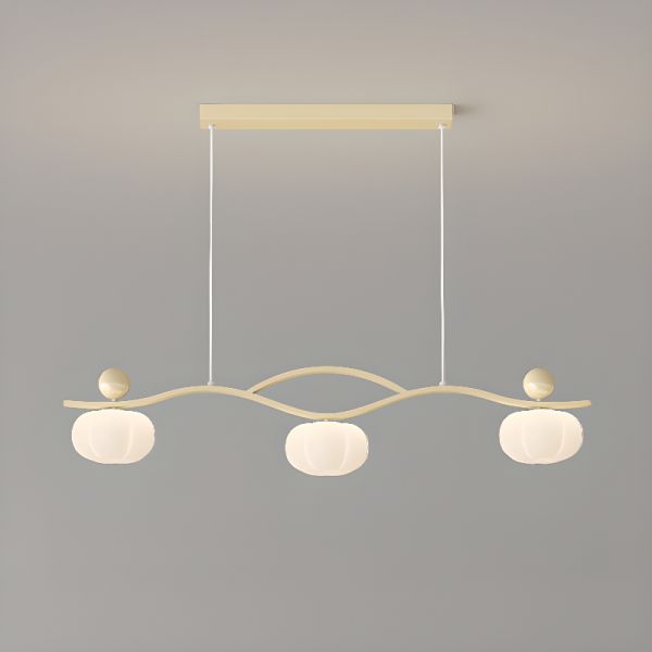 Scandinavian Wavy Linear Island Light with Frosted Pumpkin Shades - 3 Beige 110V-120V