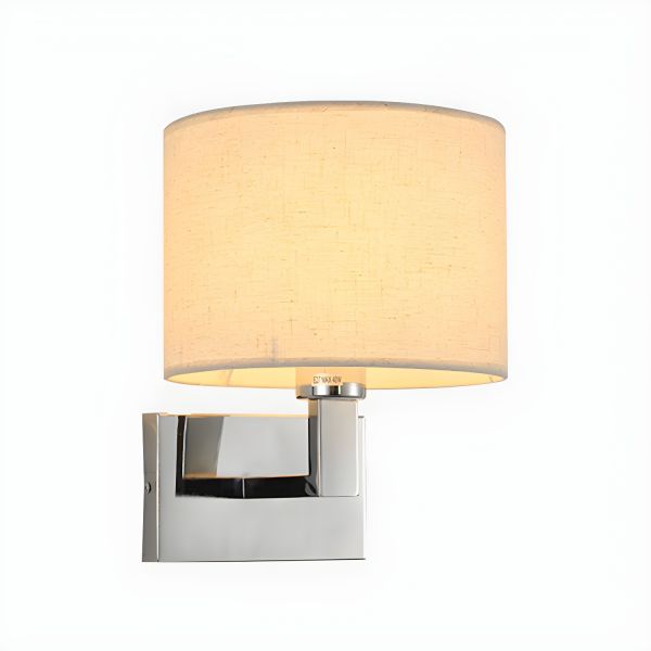 Contemporary Chrome Wall Sconce with Linen Fabric Shade and Integrated Toggle Switch - 110V-120V Beige 1