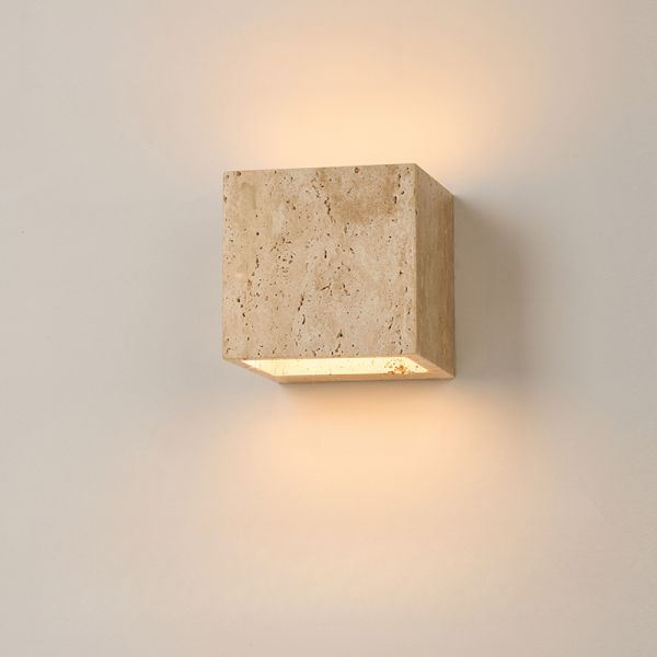 Chic 2 Lights Wall Light with Beige Sintered Stone, Up & Down Shade Direction, Third Gear Color Temperature, 110V-120V, Square