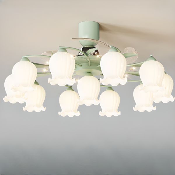8 Blades Flush Mounted Ceiling Fan with Light, Smooth Dimming Control, Clear Fan Blades, Flushmount Installation, ABS Plastic Material for Residential Use in Contemporary Style, Green, 110V-120V