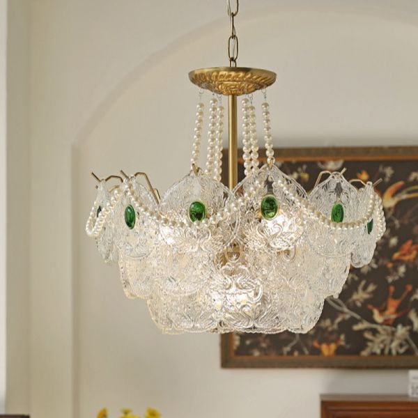3 Tiers Transparent Chandelier with Adjustable Height, Green, 110V-120V, 20"
