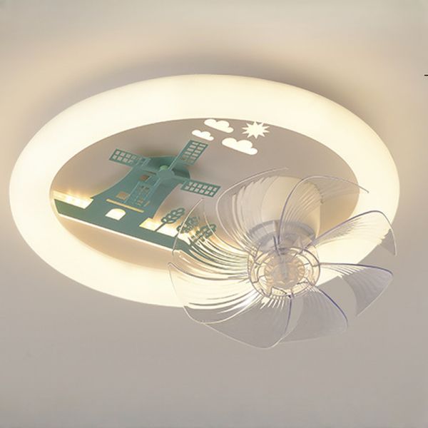8 Blades Children's Flush Mounted Ceiling Fan with Light, Plastic, Smooth Dimming Control, Clear Blades, Integrated LED, Flushmount, Green, 110V-120V