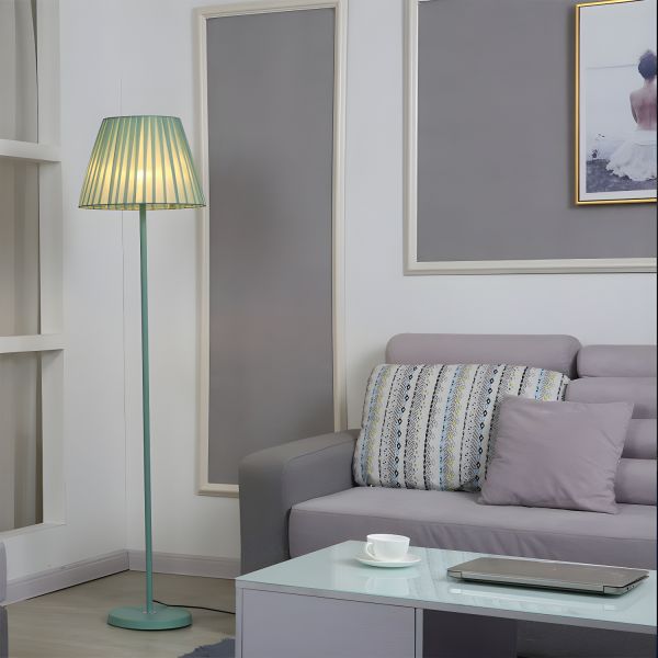 Scandinavian Minimalist Floor Lamp with Pleated Fabric Shade - Soft Ambient Standing Light for Living Room and Bedroom - 110V-120V Green