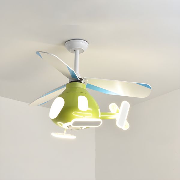 Playful Airplane Ceiling Fan with LED Light, Dimmable Flush Mount Fixture for Kids Bedroom or Nursery - 110V-120V Green Remote Control Stepless Dimming