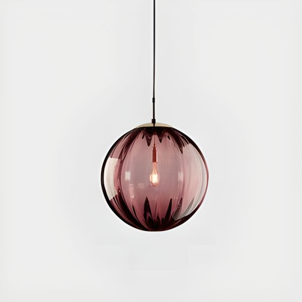 Mid-Century Fluted Glass Globe Pendant Light with Brass Accent - Red 110V-120V 6"