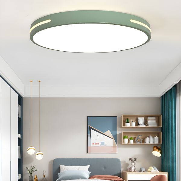Scandinavian LED Flush Mount Ceiling Light, Low Profile Round Fixture for Low Ceilings - Green 110V-120V 12" White Light