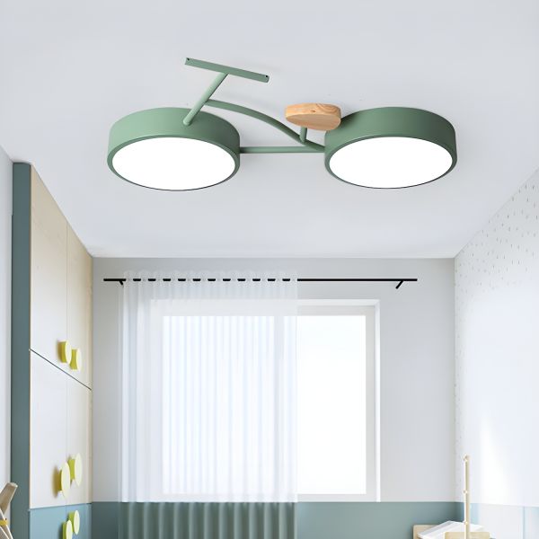 Creative Nordic Bicycle Ceiling Light, LED Flush Mount Fixture for Kids Bedroom & Nursery - 110V-120V Green Warm Light