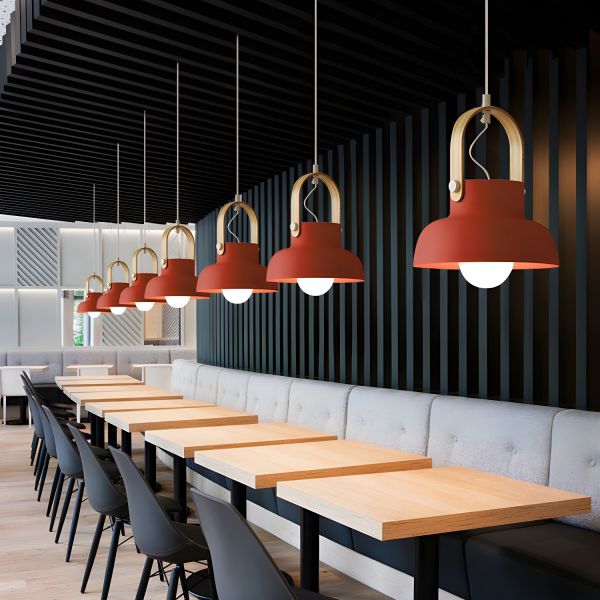 Scandinavian Dome Pendant Light with Wood Accent, Metal Hanging Lamp for Kitchen Island - 110V-120V Rose Red