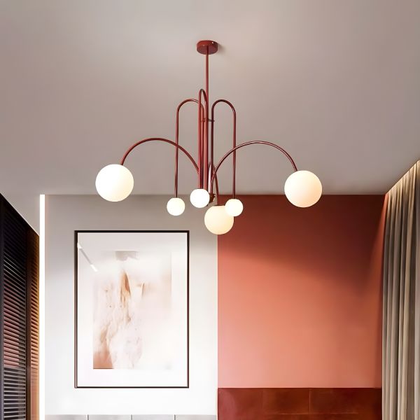 Modern Chandelier Lighting Metal Hanging Light Fixtures with White Glass Shade - 110V-120V Red 39.5"